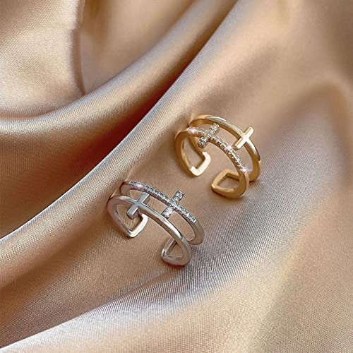 To My Daughter Pray Through It Double Cross Ring, Double Cross Open Adjustable Ring (Gold)