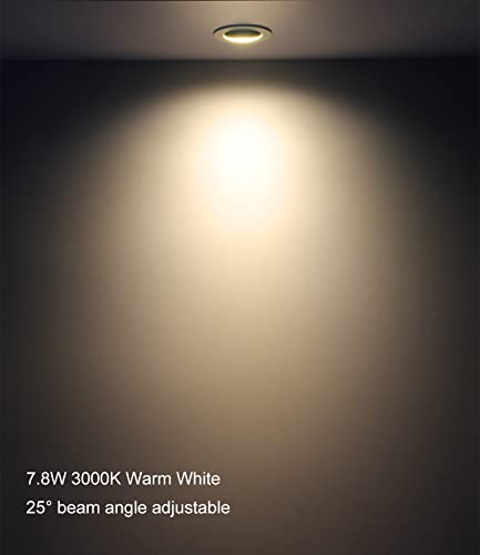 DAWALIGHT Faretti da Incasso a Soffitto 25° Faretto Regolabile LED Dimmerabile 7.8W 3000K Bianco Caldo Rotondo a Soffitto per Hotel Ufficio Ingresso Mercato Soggiorno, Alluminio, Bianco