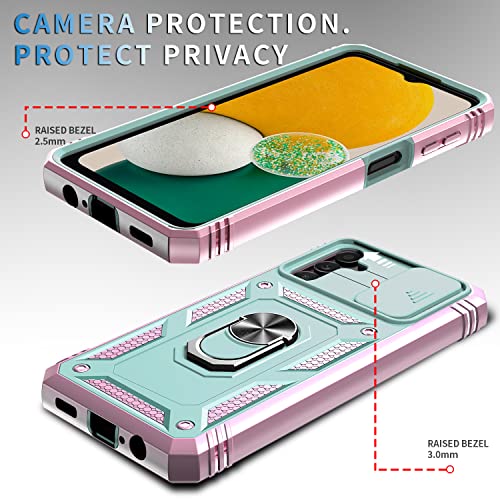 DAWEIXEAU Custodia Galaxy A13 4G,(Non A13 5G) Scorrevole Protezione Fotocamera Cover Antiurto Copertura Custodia per Samsung Galaxy A13 4G (Rosa Verde)