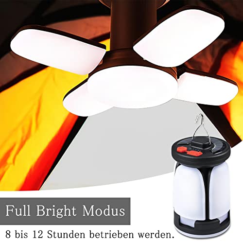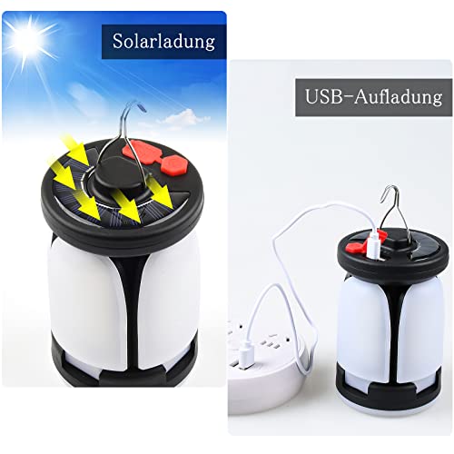 DAWRIS Lampada Solare da Campeggio, Torcia Lanterna Ricaricabile Pieghevole USB Campeggio LED 6 Modalità Lampada da Tenda Portatile per Campeggio, Pesca, Escursionismo,Emergenza