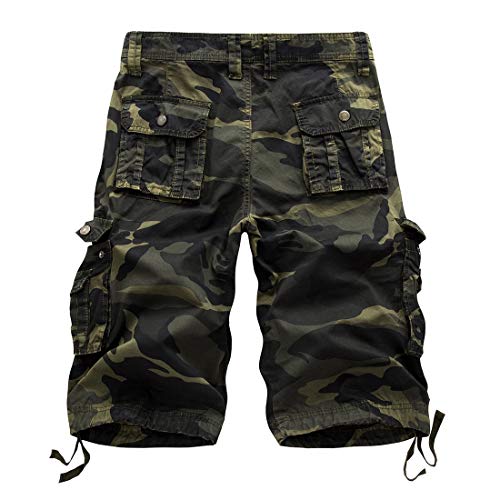 Dawwoti Pantaloncini Camouflage Cargo Uomo, Multi-Tasche Cintura Esterna Shorts vestibilità Morbida Bicchierini del Carico