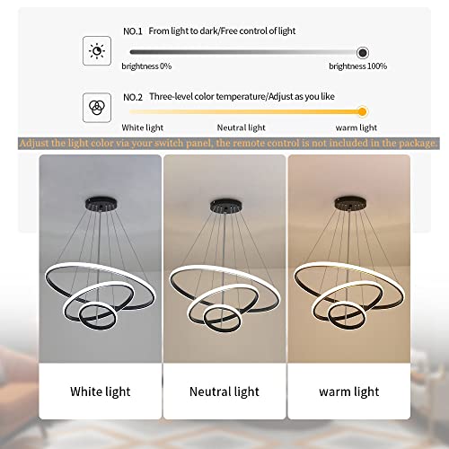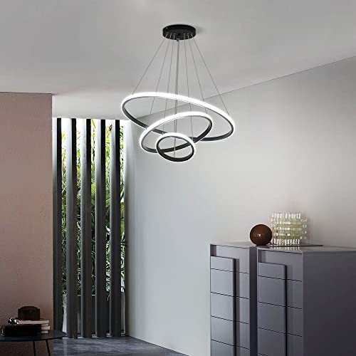 DAXGD Lampadario a sospensione a soffitto Cerchio nero 3 Anelli, 76W Plafoniere a LED in alluminio Diametro 60cm, Lampada moderno a LED 3000K/4500K/6500K