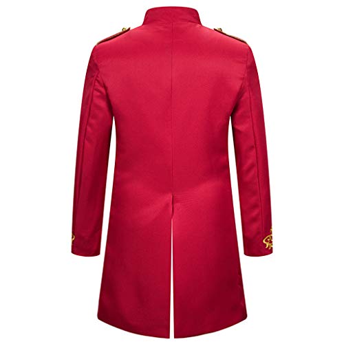 DAY8 Blazer Uomo Slim Fit Doppio Petto Lungo da Sera Cappotto Uomo Invernale Elegante Gotico Giacca Steampunk Velluto Uomo Vintage Risvolto Soprabito (Rosso, L)