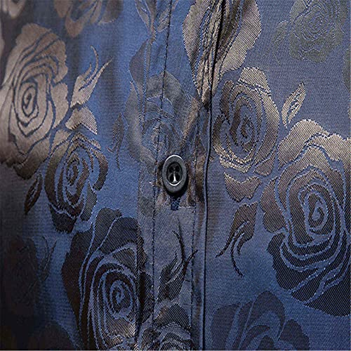 DAY8 Camicie Uomo Slim Fit Maniche Lunghe Classiche Fantasia Vintage Eleganti Invernali Camicia Uomo Manica Lunga Taglie Forti Risvolto Cerimonia Matrimonio Spettacolo Partito Camicetta (Blu, M)