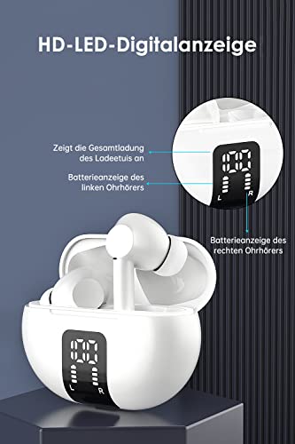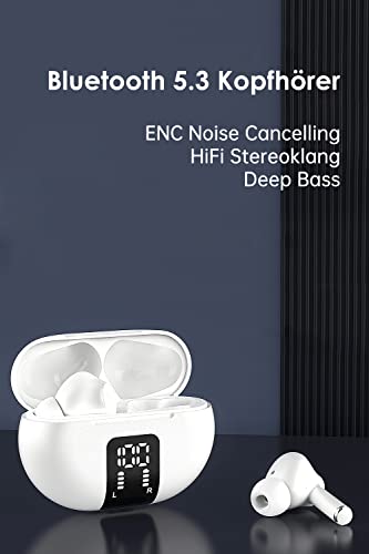 DayDup Cuffie Bluetooth 5.3, in ear con doppio microfono, senza fili Deep Bass Stereo, ENC Cancelling del rumore, 30 tempo di gioco, IPX7, indicatore LED (bianco), S