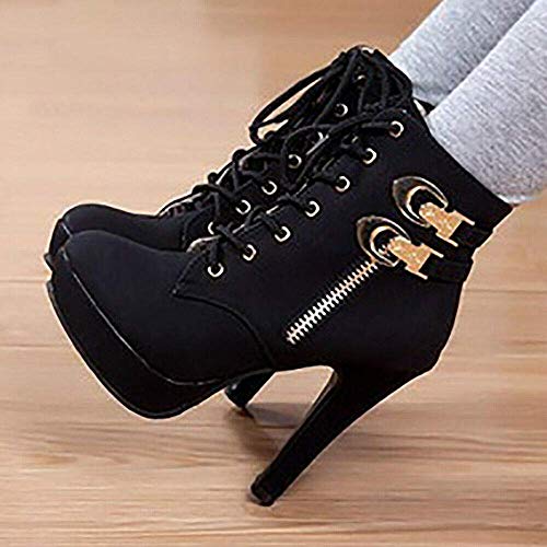 DaYee Stiletto Tacchi Alti delle Donne Stivaletti Stringati Signore con Fibbia Partito Casual Shoes (43,Black)