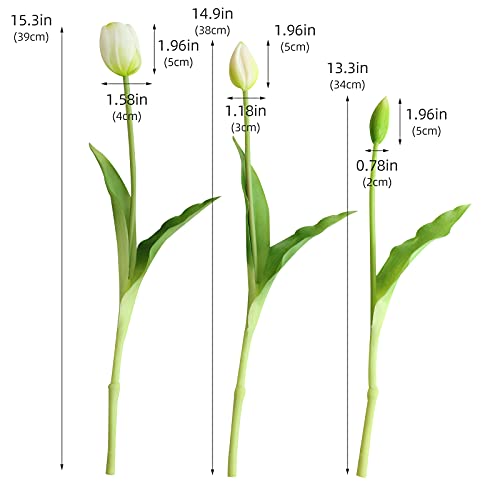 Comodo da usare: veri tulipani artificiali lavabili. Rimodellare liberamente con facilità per composizioni floreali creative fai da te per riempire vasi, aggiungere vitalità alla stanza. Ogni stelo finto tulipano misura circa 38,9 cm di altezza, si adatta bene in un vaso di medie dimensioni. È molto adatto per regali di inaugurazione della casa, bouquet da sposa, ufficio, soggiorno, cucina, bar, decorazione della caffetteria, baby shower o pittura natura morta, ecc.
