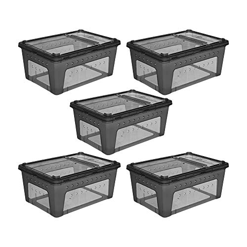 Dayoly, 5 contenitori per rettili in plastica, trasparenti, per animali domestici, per gatti, lucertole, serpenti, ragni, colore: nero