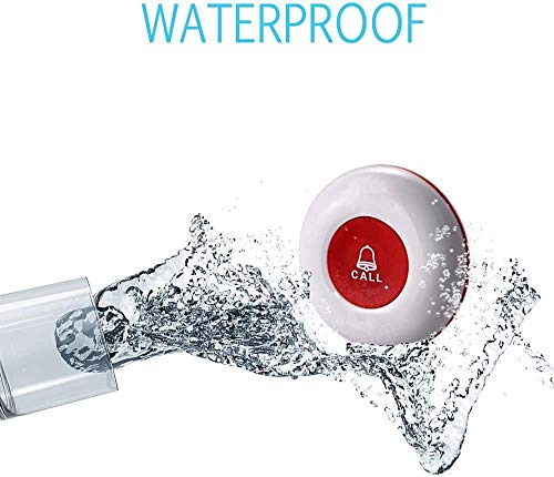 Daytech Pulsante di chiamata di emergenza per anziani di allarme Pager Softly Sound Alert System Chiamata di emergenza per anziani IP55, impermeabile, 400 piedi in campo aperto (solo 2 trasmettitori)