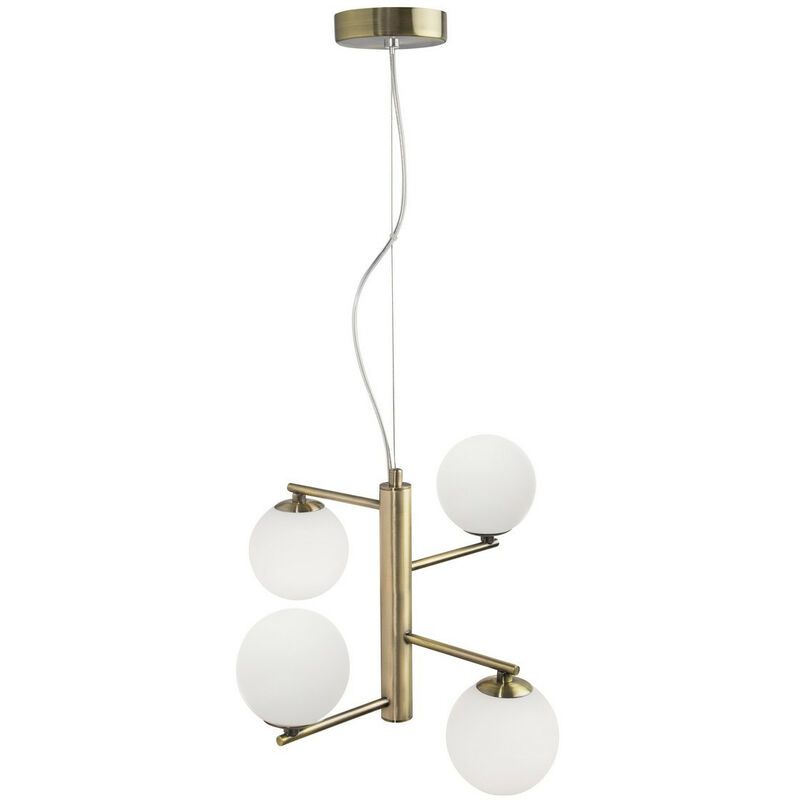 Merano Dayton Lampada da soffitto a sospensione a globo con 4 luci, vetro opale, ottone anticato, metallo G9 | Finitura: ottone, bianco | Materiale: vetro, metallo | Classificazione IP: IP20 | Altezza: 150cm | Lunghezza: 35 cm | Larghezza: cm | Tipo di lampada: G9 | N. di lampade: 4 | Lampadina inclusa: No | Dimmerabile: No | Peso: 1,5 kg | Potenza (massima): 4x5W