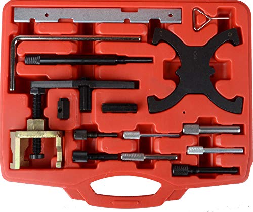 La confezione include: strumenti di bloccaggio dell'albero a camme e volano vari perni di distribuzione più uno strumento di rimozione del pignone dell'albero a camme.