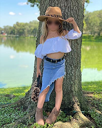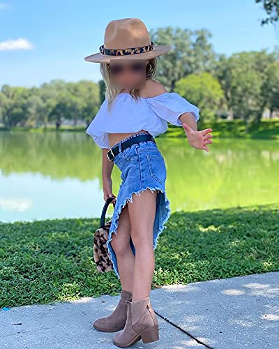 Daz2 Pz Completi da Bambina Bianco Spalle Scoperte Manica Corta Top Camicetta Camicia e Gonna di Jeans Nappa Irregolare 1-6T (Bianco 5-6 anni)
