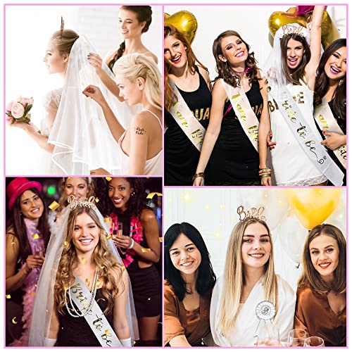 DazSpirit Gadget Addio al Nubilato Sposa, 16pcs Gadget Sposa - Fascia da Sposa, Velo da Sposa, Fusciacche Damigella d'Onore, Adesivi Tatuaggi, Fascia per Capelli con Tiara Distintivo della Sposa