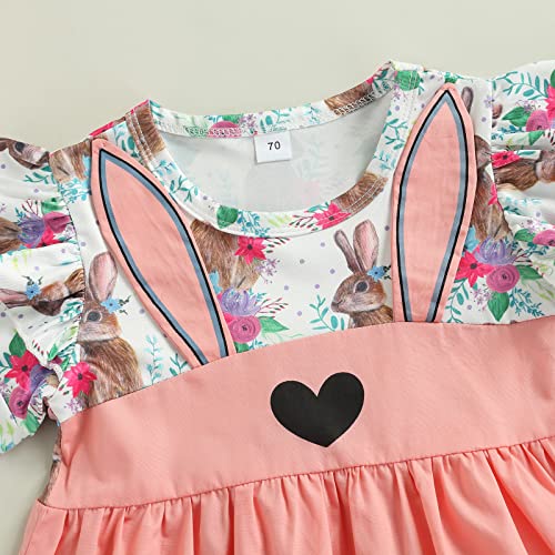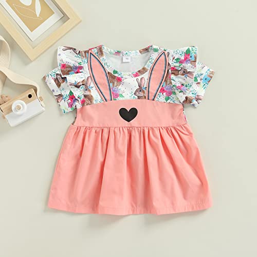 Dazzerake Abito da Bambina con Motivo Floreale di Coniglio Abito Stampato Abito Stile Dolce di Pasqua Girocollo Ruffle Trim Comodi Vestiti da Principessa (Rosa Coniglio, 2-3 Anni)