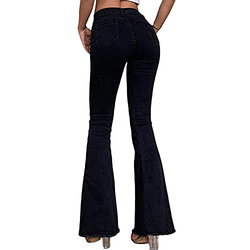Dazzerake Jeans da Donna Vintage con Fondo a Campana Jeans Bell Bottoms Flare Vita Alta Tinta Unita Jeans Svasati Slim Fit Pantaloni in Denim Anni '70 (Nero, XL)