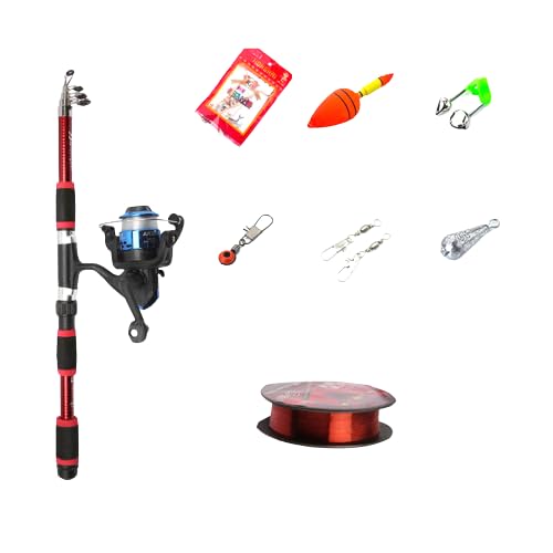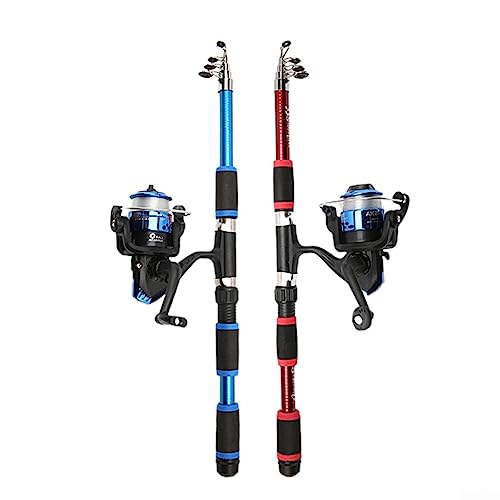 DAZZLEEX Set di canne da pesca telescopiche, 1,8/2,1 m, portatile, leggero, accessorio per pesca all'aperto (rosso, 2,1 m)