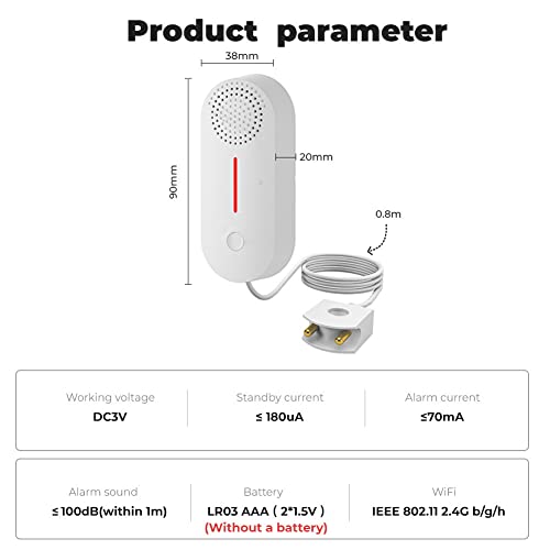 DAZZLEEX Smart Home Rilevatore di perdite d'acqua per Tuya Smart WiFi Rilevatore di perdite di livello dell'acqua di inondazione Allarme di trabocco 100 DB Sirena, Allarme di perdite d'acqua