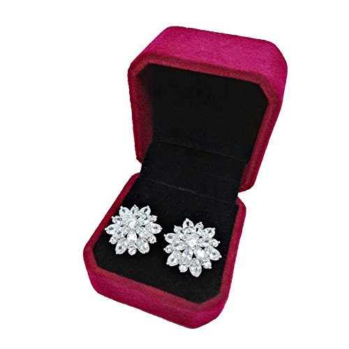 Dazzling fiocco di neve in argento Sterling 925 placcato al rodio, taglio rotondo orecchini accuratamente realizzati con cristallo di zirconia cubica Starlight per donne