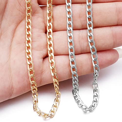 DBAILY Catene a Maglia Intrecciata In Alluminio,2 Rotoli Catene Di Cordoli Non Saldatonon Sbiadire Accessori Per Gioielli Per Fai Da Te Gioielleria Catena Della Borsa Collana 7 x 4mm×5m(Oro,Argento)