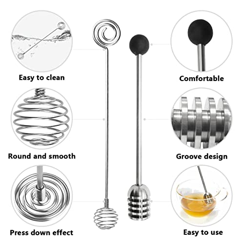 Quantità Di Imballaggio: Il design a spirale è elegante e compatto e puoi goderti l'ambiente casual. Il nostro pacchetto include 1 cucchiaio di miele, 3 bacchette per mescolare, sono disponibili doppie teste e la vita è più di qualità.