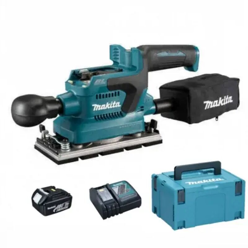 La levigatrice orbitale Brushless a batteria 18 V Makita DBO381RFJ1U è un'innovativa levigatrice a batteria che garantisce la massima mobilità all'operatore grazie all'assenza di cavo di alimentazione. Il design moderno di questa levigatrice consente di eseguire lavorazioni anche prolungate con la massima facilità, riducendo il più possibile le vibrazioni erogate e limitando così le sollecitazioni eccessive sulle braccia del lavoratore.La levigatrice orbitale 18 V Makita DBO381RFJ1U è dotata di motore Brushless a lunga durata che richiede minima manutenzione, tecnologia XPT che garantisce protezione da polvere e spruzzi d'acqua, sacchetto raccogli polvere ed impugnatura ergonomica con soft grip.Grazie alla ricercata ergonomia sono possibili lavorazioni in diversi campi ed applicazioni;