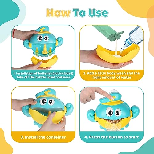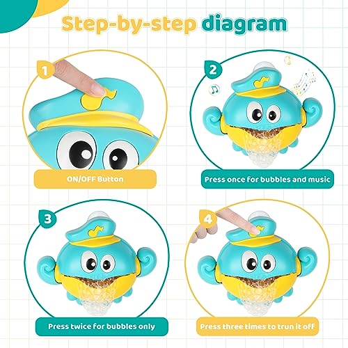 【Polpo giocattolo da bagno super divertente】Basta premere l'interruttore e il simpatico polpo sputa bolle colorate, creando un mondo di bolle da sogno per i bambini. Con musica incorporata per intrattenere i bambini con bolle e musica durante il bagno, questo adorabile amico del bagno incoraggia l'immaginazione, la curiosità e la motricità fine.