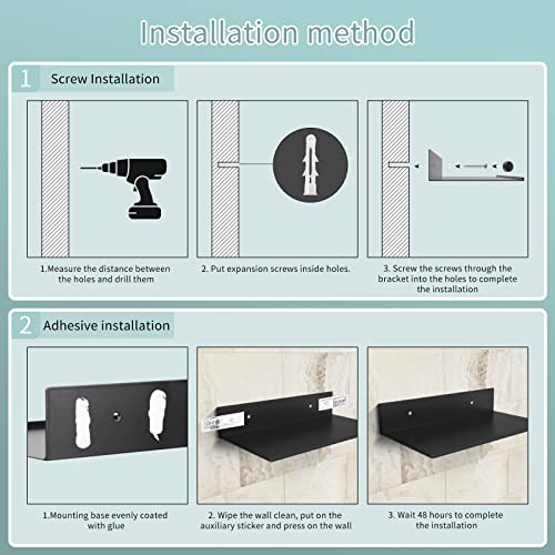 【Facile da installare】 È possibile montare le mensole a parete forando e incollando. Se non si desidera praticare fori per il montaggio, la forte adesione e le proprietà idrorepellenti dell'adesivo aiutano la mensola sospesa ad aderire saldamente alla parete, garantendo una forte capacità di carico ed evitando di danneggiare la parete. Le viti e gli altri accessori sono inclusi e il metodo di installazione è semplice e diretto.