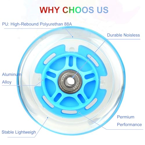 【Facile installazione】Queste ruote luminose a LED sono facili da installare e si adattano alla maggior parte degli scooter. Grazie ai cuscinetti di alta qualità e alla resistente struttura in uretano 88A, sono durevoli e offrono un'esperienza di guida a basso attrito.