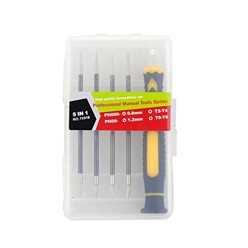 DBSUFV Set di cacciaviti combinati 5 in 1 Chiave 8801A / 8801B T2 T4 T5 T6 PH00 PH000 0,8 1,2 Punte per cacciavite pentalobe Impugnatura