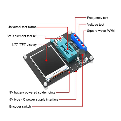 DC5V Transistor Tester Volt Frequenzimetro con Schermo a Colori TFT da 1,77 Pollici Digital ESR Transistor Capacitor Tester (Versione completa inglese)
