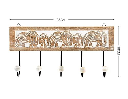 Dcasa - Appendiabiti a Parete con 5 Ganci in legno intagliato a forma d'elefante, 38 x 18 cm.