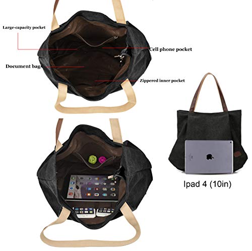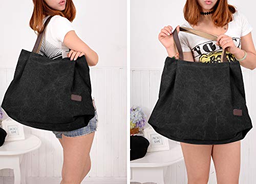 DCCN Tela Borsa A Tracolla Da Donna Vintage Borsetta Borse A Mano Sacchetto Messenger Borsa A Spalla Shopper Grande (nero)