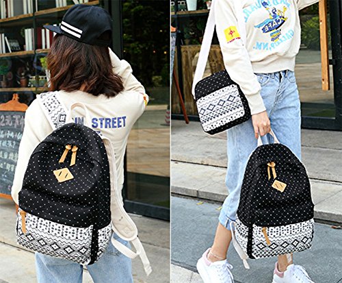 DCCN Tela Zaino Casual Scuola Zaini Donna Ragazza Canvas Backpack Zainetto 3 in 1 (nero)