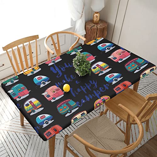 DCERHERG You Make Me Happy, tovaglia stampata con camper e rimorchio, tovaglia rettangolare da 1,5 m, 76 x 152 cm, impermeabile, lavabile, tovaglia protettiva per tavoli da pranzo