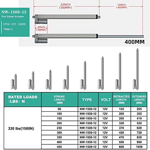 ★ Parametri del prodotto: corsa di 400mm, estensione massima di 950mm, lunghezza retratta di 550mm, prestazioni stabili. La forza di spinta massima di 1500N/330 libbre e la forza di trazione di 1000N/264kg, per una buona capacità di carico e una buona durata