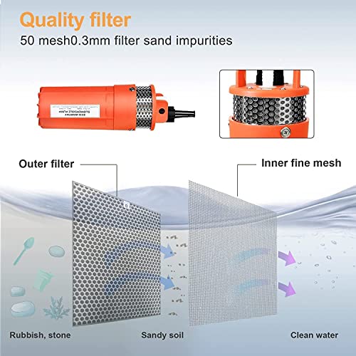 DCHOUSE Pompa dell'acqua a grande portata 12V Pompa sommersa, pompa dell'acqua ad energia solare ad alto sollevamento, 230 piedi/70 m, per casa, fattoria, bestiame, irrigazione