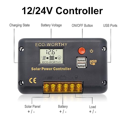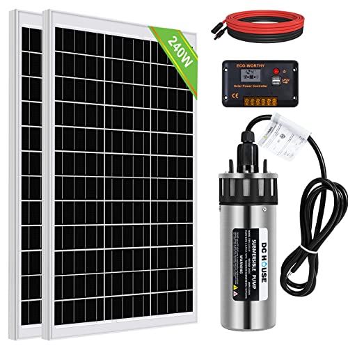 DCHOUSE Sistema pompa acqua solare 240W 24V grande flusso 3.2GPM 2 pannelli solari 120W + pompa di fontana sommergibile + regolatore 20A + cavo da 16 piedi per irrigazione, giardino