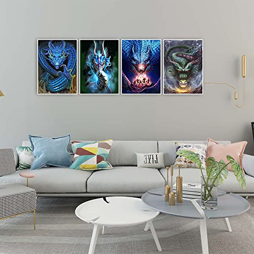 DCIDBEI Diamond Painting 4 Pack 30x40 cm 5D Diamond Painting Dragon Diamond Painting Drago di Fuoco Diamante Painting Immagini Mosaico Fai Da Te Adulti Pittura con i Numeri Set da Punto Croce