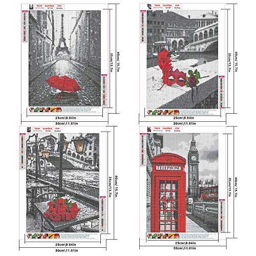 DCIDBEI 4 Pezzi Diamond Painting Paesaggio 30x40 cm Tour Eiffel Diamond Painting London Autobus Rosso Diamond Painting Maschera Veneziana Punto Croce Paesaggio Ponte Rialto Ponte di Rialto Adulti