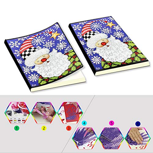 DCIDBEI Quaderno foderato A5 con strass 5D fai da te a punto croce diamond painting, diario segreto, blocco note con diamanti colorati, diario di viaggio babbo natale per natale, 60 fogli 120 pagine