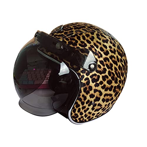 DCLINA Mezzo Casco Moto, Casco Viso Aperto 3/4 Stile retrò Adulto Approvato DOT, Adatto Scooter Strada Unisex Casco Ciclomotore per Uomo Donna Casco Moto Urbano, Leopardo Floreale, S-XXXL