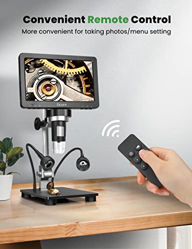 Dcorn 7'' HDMI Microscopio Digitale 1500X, 16MP 1080P LCD Microscopio Digitale con 32GB TF Card per Saldatura Adulti, 10 LED di Luce, Microscopio Elettronico Compatibile con Windows/Mac/TV/Proiettore