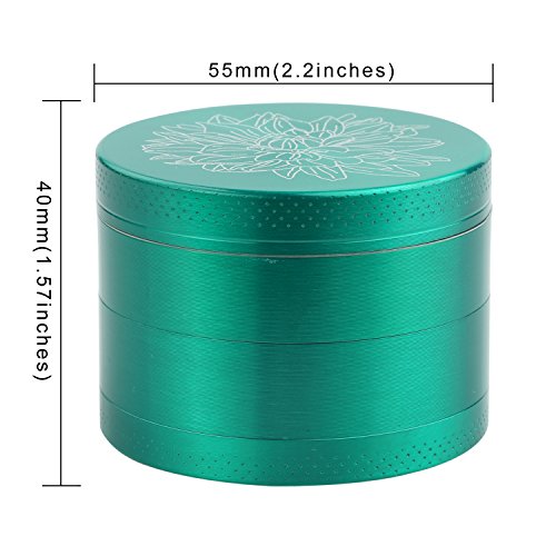 DCOU nuovo design premium in alluminio smerigliatrice erba 2,2 pollici 4 pezzi smerigliatrice metallica con collettore di polline con il modello di fiore laser (Margherita verde)