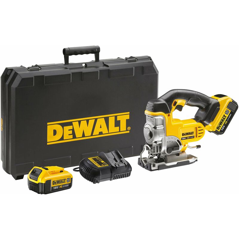 18v seghetto alternativo. potenza resa 400w, 0-3000 corse/min, lunghezza corsa 26mm, inclinazione 45°, max capacità di taglio legno/metallo 135/10mm, 3.1kg. dotazione: 2 batterie xr litio 4.0ah, caricabatterie, accessorio per aspirazione, protezione antigraffio, valigetta.