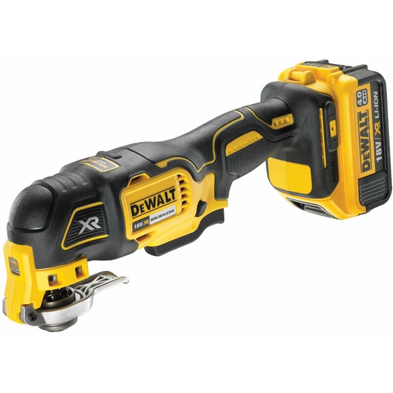 Utensile multifunzione 18v potenza resa 300w, velocità 0-22.000 orb/min, angolo oscillazione 1.6°, aggangio rapido accessori senza chiavi, interruttore a doppia presa, blocco dell'interruttore, peso 1.7kg. Dotazione: 2 batterie 4.0ah xr litio, caricabatterie, lama per taglio legno e chiodi, lama per taglio veloce egno, lama per taglio precisi legno, lama semicircolare per veloce legno, lama semicircolare per rimozione fughe, raspa rigida, platorello per levigatura, carta abrasiva (25 fogli grana assorita), adattatore universale, adattatore per aspirazione, stop di profondità / guida per tagli rettilinei, valigetta t-stak.