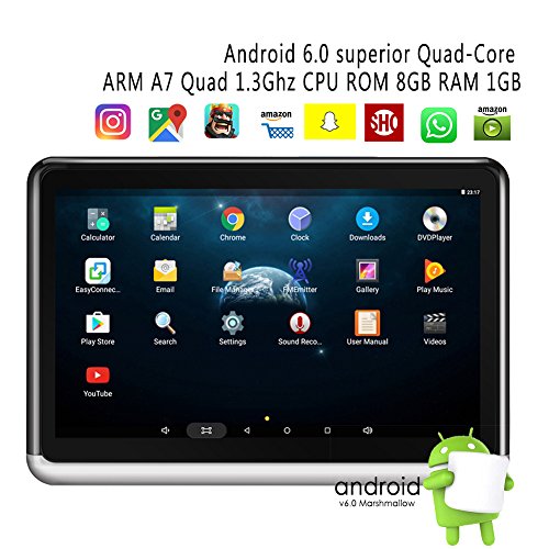 Ddauto DDA10DD lettore DVD portatile tablet Android 6.0 25,7 cm IPS touch screen auto poggiatesta monitor multimediale, Bluetooth 4.0, batteria 4000 mAh integrata, supporta HDMI, FM, WiFi versione più recente (2 pz)
