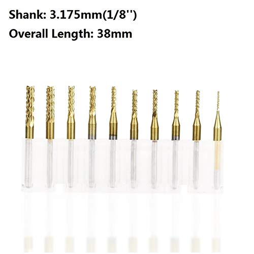DDDCM 10pcs Tin Rivestito 0.5-3.175mm PCB Fresa CNC Fresatura Bit 3,175 Millimetri Shank carburo Fresa for PCB Macchina (Cutting Edge Diameter: 10pcs 3.175mm)