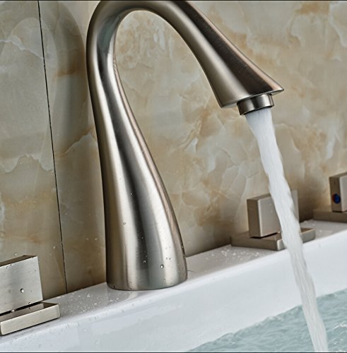 DDKD Nichel Spazzolato 5Pz Montate Sul Ponte 3 Maniglia Quadrata Vasca Da Bagno Rubinetto Con Tenuta In Mano La Doccia