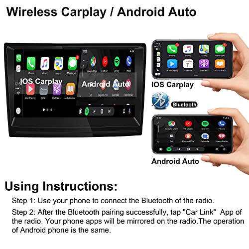Per Apple CarPlay wireless e Android auto cablato: Consente agli utenti di effettuare telefonate e ascoltare musica. È sufficiente collegare il telefono iOS a questa unità principale Android tramite Bluetooth per utilizzare CarPlay o collegare il telefono Android tramite Blutooth o cavo USB per utilizzare Android Auto.