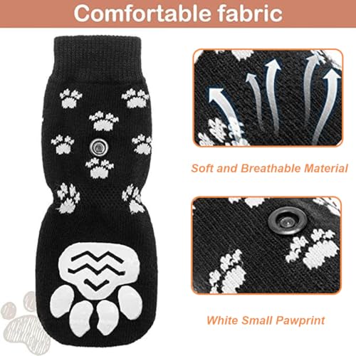 DDKY Confezione da 4 calzini antiscivolo, calzini antiscivolo per cani, calzini antiscivolo regolabili per interni, calzini protettivi antiscivolo per zampe per cani di piccola e media taglia